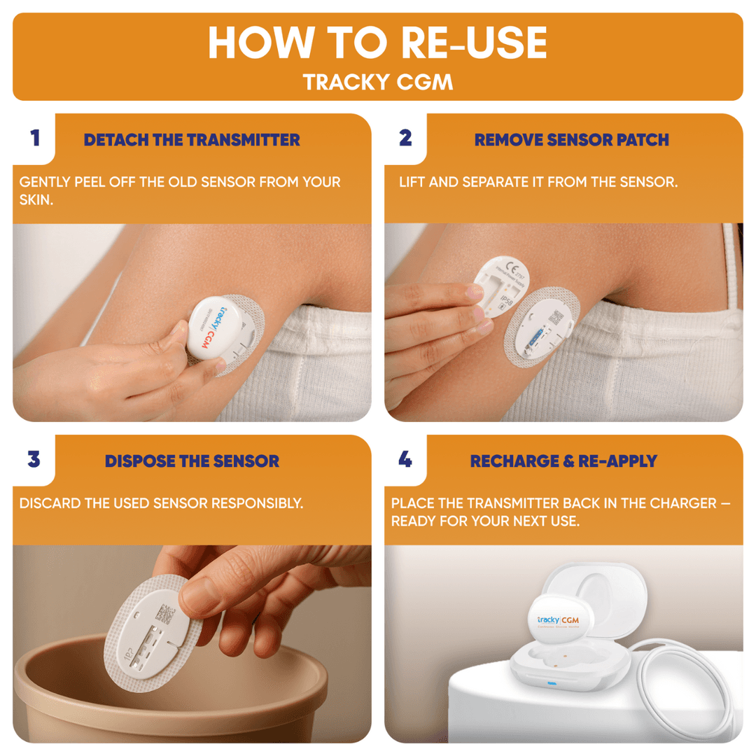 Discover the future of diabetes care with Tracky CGM, India’s first Bluetooth-connected Continuous Glucose Monitor. Designed to simplify glucose tracking, this revolutionary system provides real-time data to help you make confident health decisions.