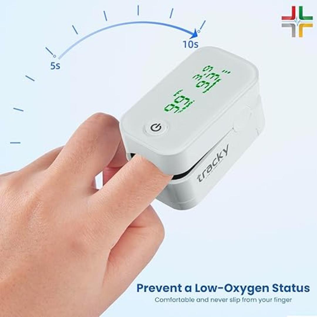 The device uses light-based technology to evaluate blood oxygen saturation and pulse rate by measuring through your fingertip.